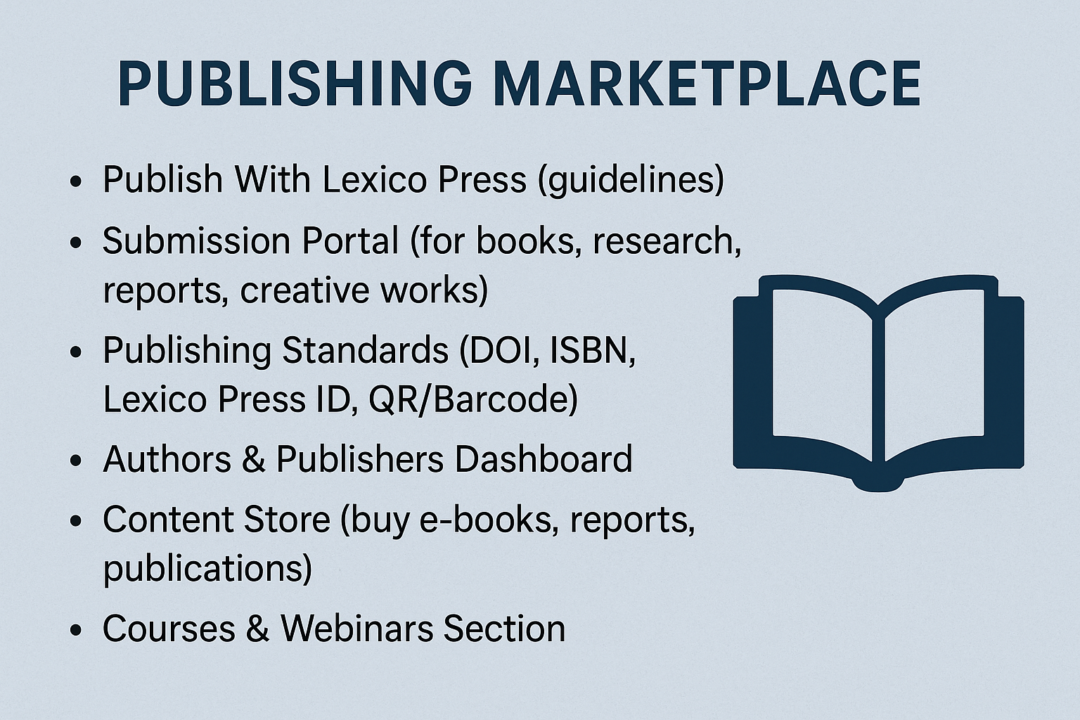 Our Publishing Marketplace and Submission Portal provide creators, researchers, and authors a trusted platform to share their books, research, reports, and creative works.